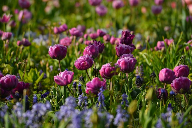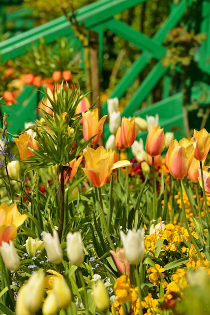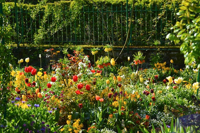 Au printemps, le spectacle du jardin de Monet à Giverny a la fraîcheur du renouveau et l’ardeur de l’été à venir. Les couleurs les plus intenses côtoient des pastels d’une infinie délicatesse. Les jardiniers y osent les associations de couleurs les plus audacieuses sans fausse note. A croire que l’âme du peintre jardinier « maître es impressionnisme » flotte toujours sur ces parterres.
